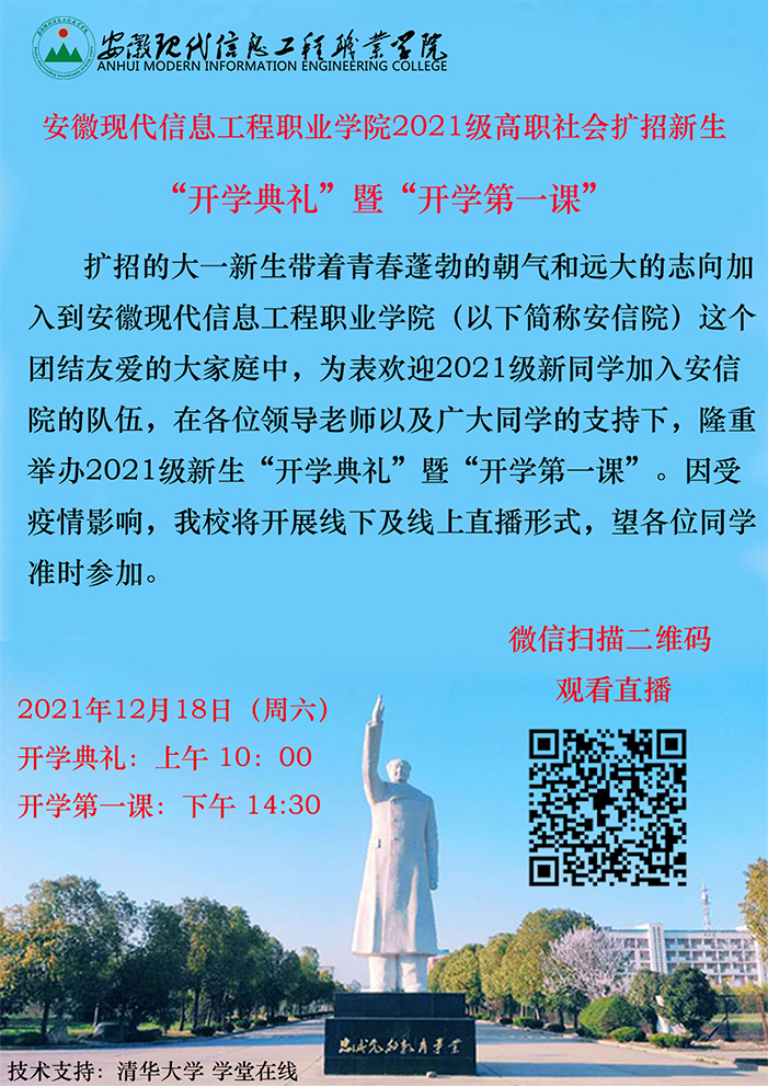 安徽现代信息工程职业学院举办2021级高职社会扩招新生“开学典礼”暨“开学第一课”