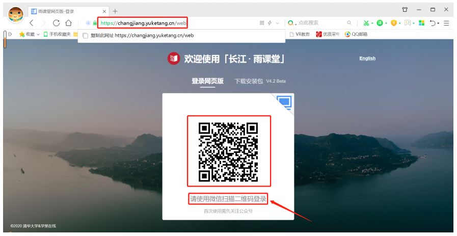 1、打开电脑浏览器,访问:changjiang.yuketang.cn ,微信扫码登录。(推荐谷歌、火狐、搜狗等浏览器访问)