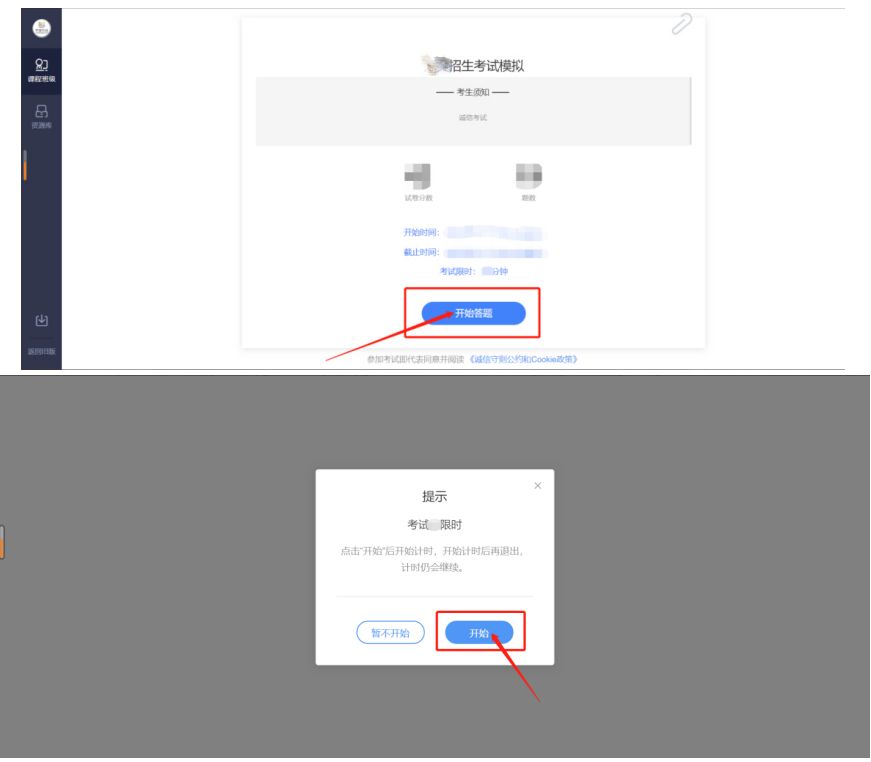 4.进入考试页面,点击开始答题
