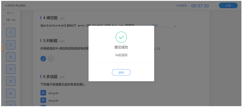 5.完成考试、交卷