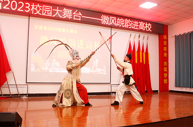 来自宿州市泗州戏剧团的艺术家为我们带来了《打焦赞》、《盘肠战》等经典泗州戏演出,为师生献上了经典文化大餐。艺术家们行云流水的动作,婉转悠扬的唱腔,张弛有度的表演,让故事中的人物鲜活生动起来,也让台下观众得以近距离观赏、细细品味泗州戏的魅力,受到师生的一致好评。整场戏高潮迭起、精彩不断,演员们精湛的技艺让师生们领略到了中国传统戏曲文化的魅力,也向大家弘扬了积极向上的价值观和人生观。
