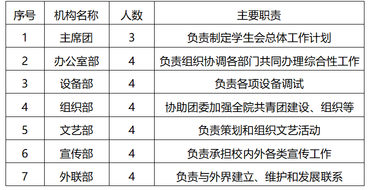 为落实共青团中央、教育部、全国学联联合下发的《关于推动高校学生会(研究生会)深化改革的若干意见》,并结合《关于巩固高校学生会(研究生会)改革成果的若干措施》文件要求,接受广大师生监督,现将我校2023—2024学年学生会(研究生会)改革情况公开如下。