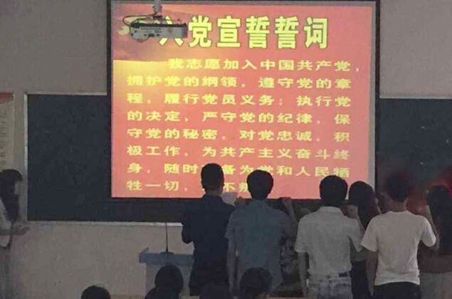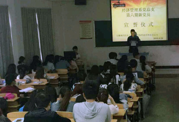 五月二十九日上午九点五十,安徽现代信息工程职业学院经济管理系在阶五多媒体教室举行了庄严而神圣的学生党员宣誓活动。