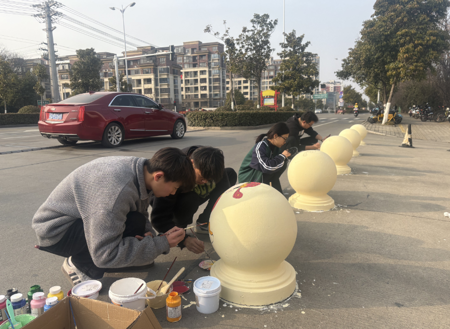 近日,安徽现代信息工程职业学院的校园里,五年高职部系部主任庄雪芹,副主任李远萍和五年高职部的师生们组成的创意小分队以画笔为工具,为校南门和西门的石墩进行艺术改造。原本普普通通的拦路石墩摇身一变,成了承载艺术与创意的文化符号,成为一道独特的风景线。