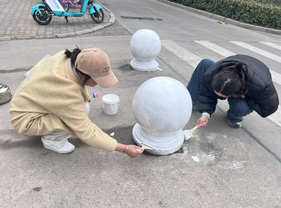 石墩绘彩焕新颜,学院师生展艺能 ——学院五年高职部创意之举点亮校园角落