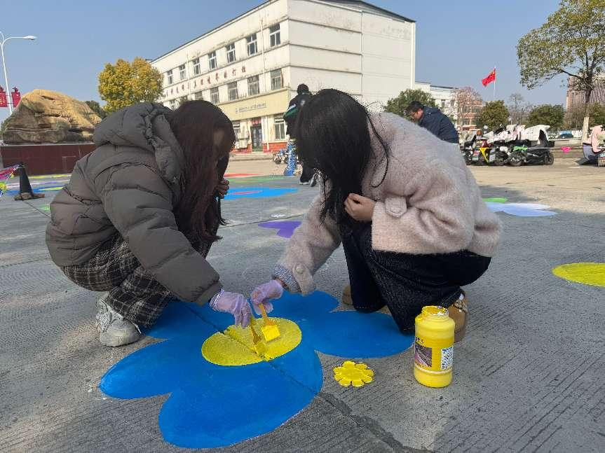 活动现场,同学们热情高涨,他们手持画笔,以地面为画布,充分发挥想象力与创造力。精心勾勒的花朵,花瓣层层舒展,似乎散发着芬芳,洋溢着蓬勃朝气。在阳光的照耀下,同学们认真绘画的身影与逐渐成型的美丽画作,构成了校园里一道独特的风景线。