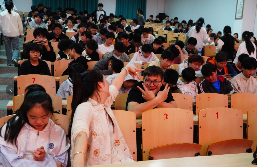 五年高职部全体老师也参与了一场温馨有趣的老鹰抓小鸡游戏。游戏中,老师们仿佛回到了童年时代,扮演老鹰的老师灵活出击,扮演母鸡的老师则张开双臂,努力保护身后的“小鸡们”,大家在游戏中尽情释放压力,现场氛围被推向了高潮。在轻松愉悦的氛围里,师生间的距离被悄然拉近,平日里课堂上的严肃感被欢声笑语所取代,师生间像是朋友般的亲密无间。