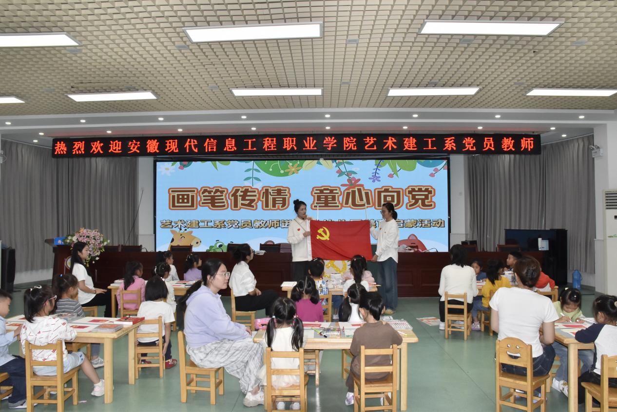 安徽现代信息工程职业学院党委牵头组织艺术建工系党支部开展“画笔传情,童心向党”进幼儿园主题党日活动