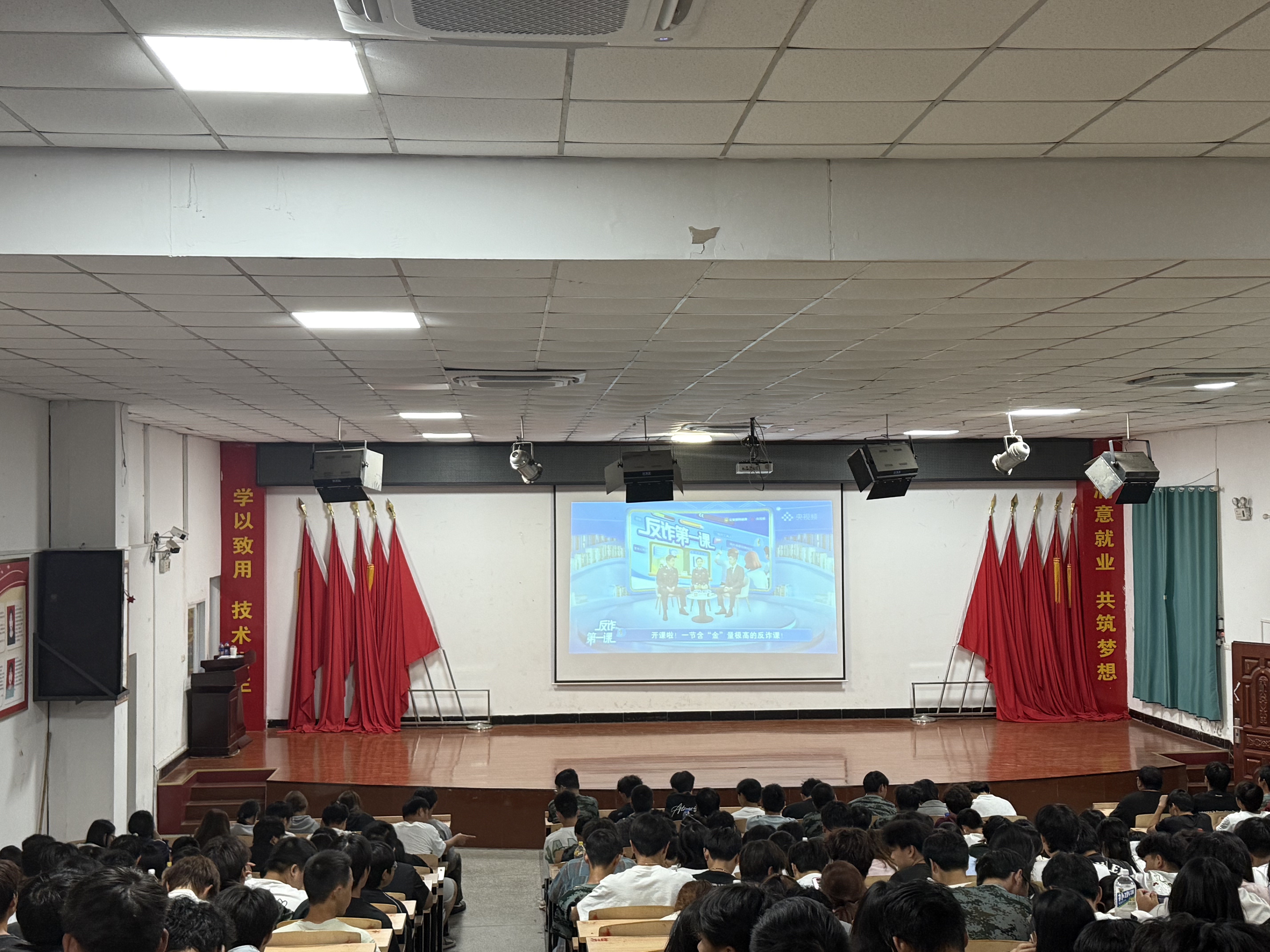 为提升2025级新生防范电信网络诈骗的意识和能力,筑牢校园反诈安全防线,9月17日晚上7点,经济管理系和机电工程系在学校多功能报告厅开展“反诈第一课”专题宣讲活动,现场通过“视频讲解+案例剖析+现场答疑”的形式,为新生上好入学后的“安全必修课”。