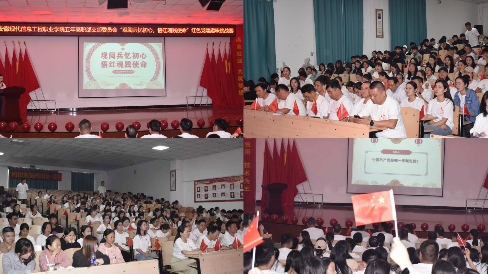 为紧扣2025年9月3日大阅兵所彰显的“铭记历史、缅怀先烈、珍爱和平、开创未来”的时代精神,将“坚守初心、勇担使命”的核心要求内化于心、外化于行。2025年9月23日下午4:10,中共安徽现代信息工程职业学院五年高职部支部委员会在学校多功能报告厅,成功举办了“观阅兵忆初心、悟红魂践使命”红色党建趣味挑战赛。