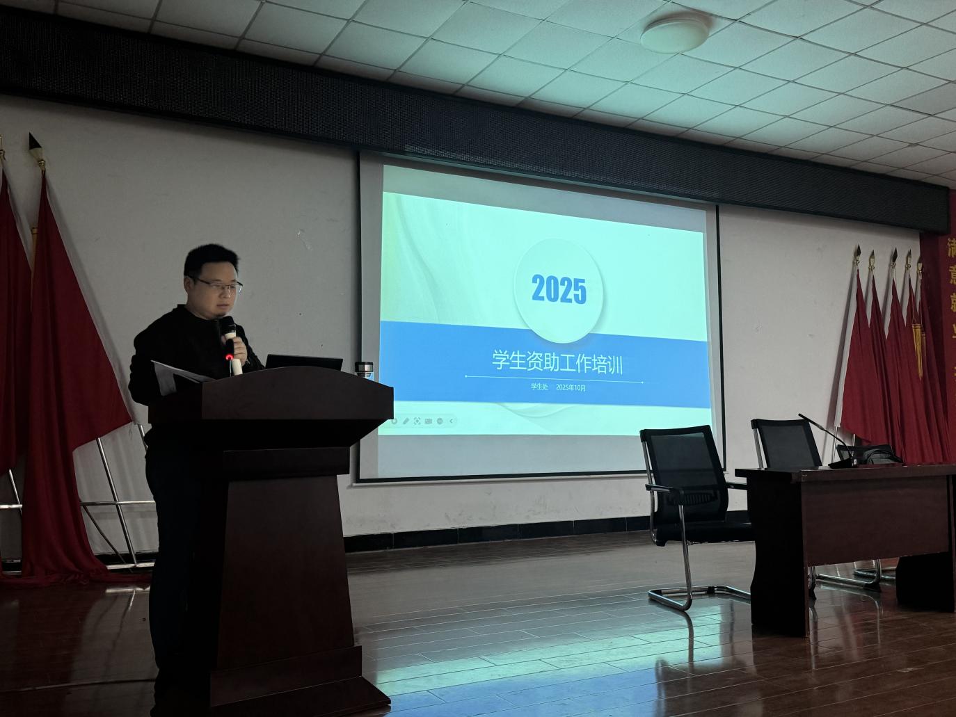 戴文俊处长就学生奖助工作开展了首场专题培训。他系统解读了国家及学院各级奖学金、助学金的申请条件、资助标准与发放流程,并针对信息填报中的常见错误与疑难问题提供了具体解决方案,为辅导员后续精准、高效开展奖助工作提供了专业指导。