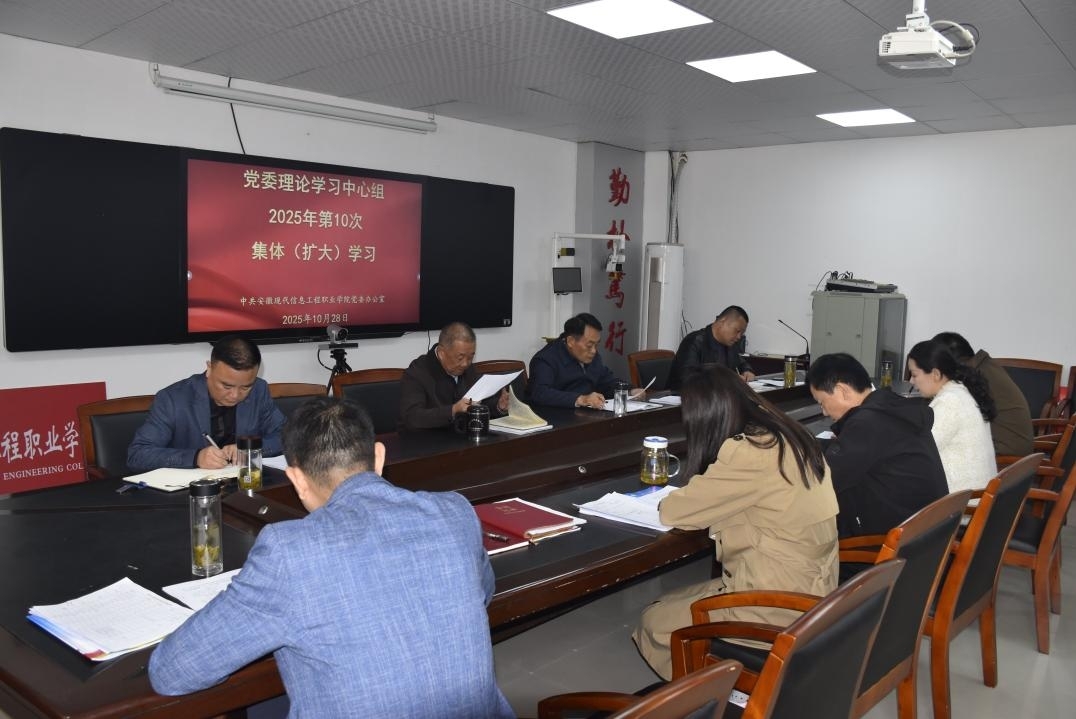 为扎实推进理论武装,着力加强思想引领。2025年10月28日上午,安徽现代信息工程职业学院于行政楼二楼会议室召开第十次党委理论学习中心组(扩大)学习会议。会议由学院督导专员、党委书记卢义忠主持,学院领导班子、各党支部书记及各处室系部负责人参加了此次学习。