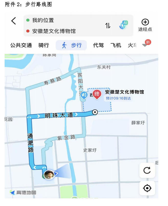 从安徽现代信息工程职业学院西门出发,沿通淝路向北直行至明珠大道交叉 口,右转沿明珠大道向东直行至安徽楚文化博物馆南门,由南门入馆。(详细路线见附件2)