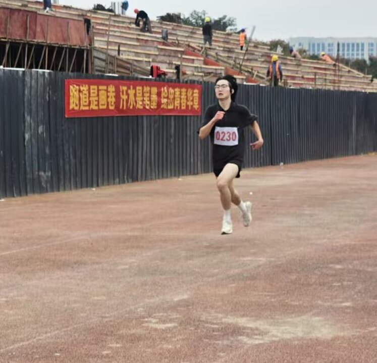 10月31日上午男子 200 米决赛中,经管系李敦睿与谢宋全晶上演 “双雄争霸”。发令枪响后,二人迅速抢占先机,全力冲刺。最终李敦睿以 24 秒 2 的成绩夺冠,谢宋全晶紧随其后,以 25 秒 17 的成绩打破该项校纪录,展现了强劲的爆发力。男子 3000 米赛道上,付洪雪展现出非凡耐力。他全程保持稳定节奏,后半程逐渐发力超越对手,最终以 9 分 43 秒的成绩冲线,将校纪录大幅刷新。当计时器定格的瞬间,看台上经管系师生的欢呼声此起彼伏。