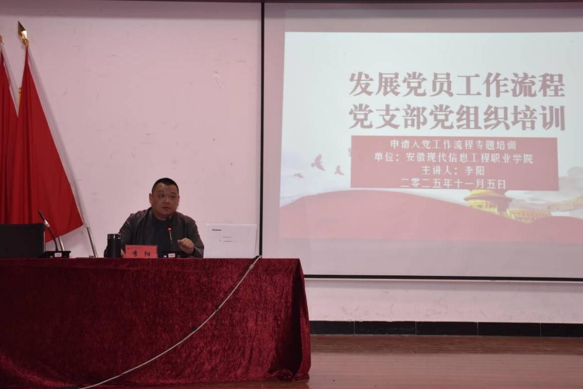 为深入学习贯彻党的二十大精神,进一步提升入党积极分子的政治素养和理论水平,严把党员发展“入口关”。2025年11月5日至7日,安徽现代信息工程职业学院成功举办第二十二期党校入党积极分子培训。本期培训围绕党的理论、组织原则、发展党员流程及入党动机等内容开展系统教学,各系部积极入党的教师和学生参加了本次学习。