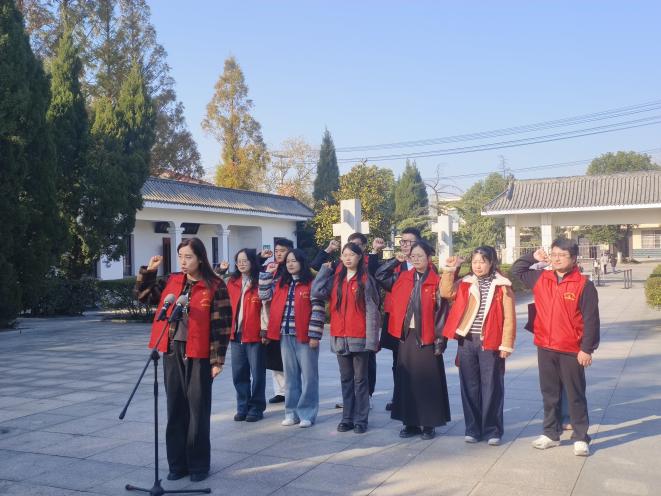 在庄严肃穆的革命烈士纪念碑前,全体党员教师整齐列队,面向党旗举起右拳,庄严重温入党誓词。“我志愿加入中国共产党,拥护党的纲领,遵守党的章程……”铿锵有力的誓言回荡在纪念碑周围,既是对革命先烈的深切缅怀,也是对党的忠诚承诺,进一步坚定了党员教师们的理想信念。
