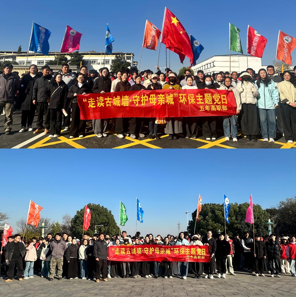 为厚植学生家乡情怀,强化环保责任意识,丰富校园文化生活,2025年11月19日下午,五年高职部党支部在支部书记庄雪芹的统筹组织下,带领全体党员开展“走读古城墙,守护母亲城”环保主题党日活动。