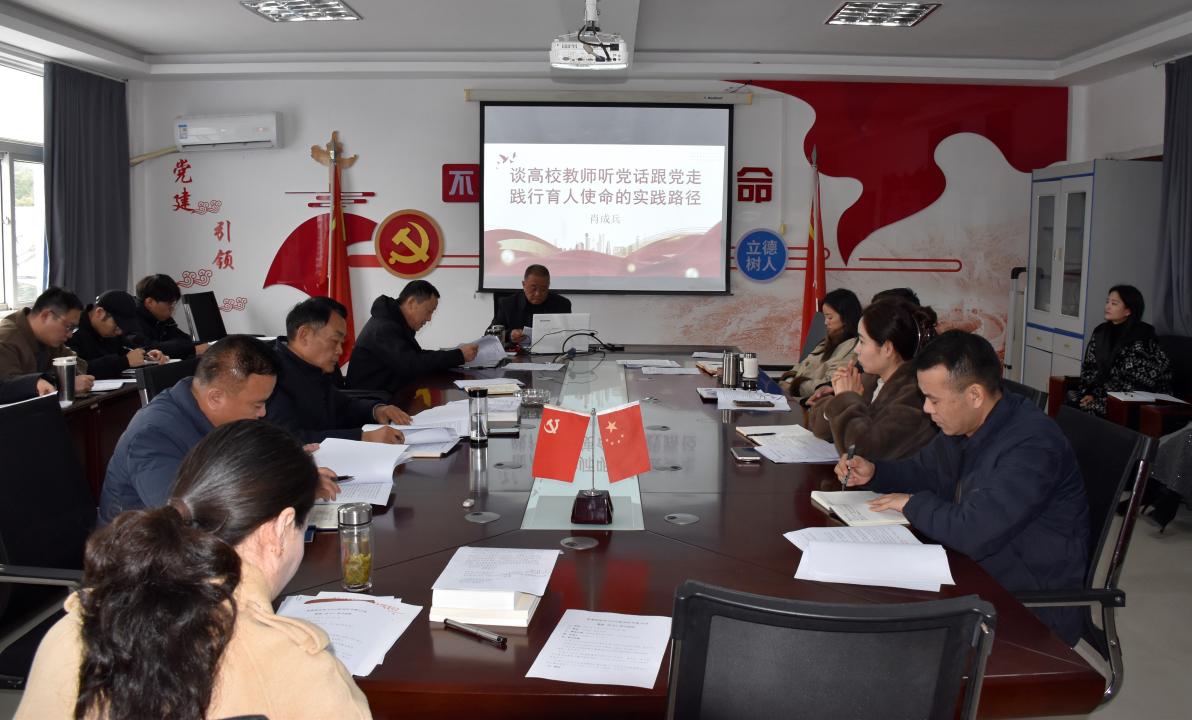 党委副书记、院长肖成兵以“谈高校教师听党话跟党走、践行育人使命的实践路径”为题,他指出,全体师生要深刻领会“听党话、跟党走”的时代内涵与实践要求,将其作为个人成长与立德树人的根本遵循。他强调,要牢记“勤学、修德、明辨、笃实”的教导,在学习和实践中锤炼本领、坚定信念,把个人追求融入民族复兴的伟大征程;广大教师作为教育的中坚力量,必须践行“为党育人、为国育才”的初心使命,以党的创新理论铸魂育人,将红色基因融入教育教学全过程,以高尚师德和扎实行动培育堪当大任的时代新人。他号召,全体师生从党史中汲取力量,增强思想自觉与行动自觉,共同营造奋发有为的育人生态,以“请党放心、强国有我”的担当,为学院发展、教育强国建设和民族复兴贡献力量。