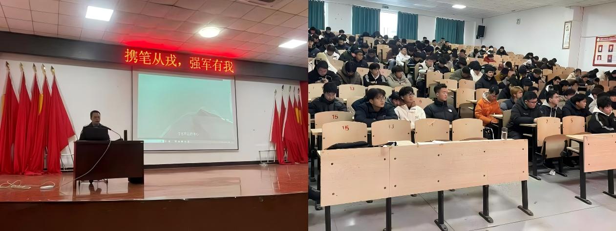 为深入贯彻落实新时代国防动员部署,进一步激发广大青年学子参军报国的热情,扎实推进2026年大学生征兵工作。2026年1月7日15:30,学生处联合寿县人民武装部在学院多功能报告厅隆重举办“携笔从戎,强军有我”主题征兵入伍宣讲会。寿县人武部上校政治委员张海深应邀主讲,学院相关职能部门负责人,及各系部近300名学生共同参与。