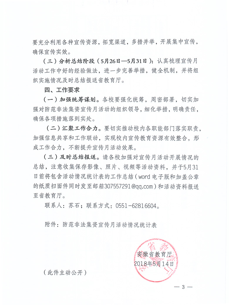 安徽省教育厅关于开展防范非法集资宣传月活动的通知