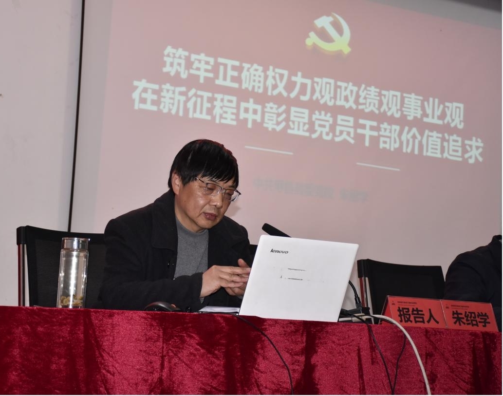 寿县县委党校信息中心主任朱绍学应邀作专题辅导报告。朱绍学以“筑牢正确权力观政绩观事业观,在新征程中彰显党员干部价值追求”为主题,从深刻认识树立正确权力观、政绩观、事业观的重要意义,准确把握其内涵,当前存在的一些错误观念及案例分析,以及如何树牢正确权力观、政绩观、事业观四个方面展开全面深刻的讲授,引导全体党员干部明晰权力来源、找准政绩导向、坚守事业初心,切实把正确的政绩观内化于心、外化于行。